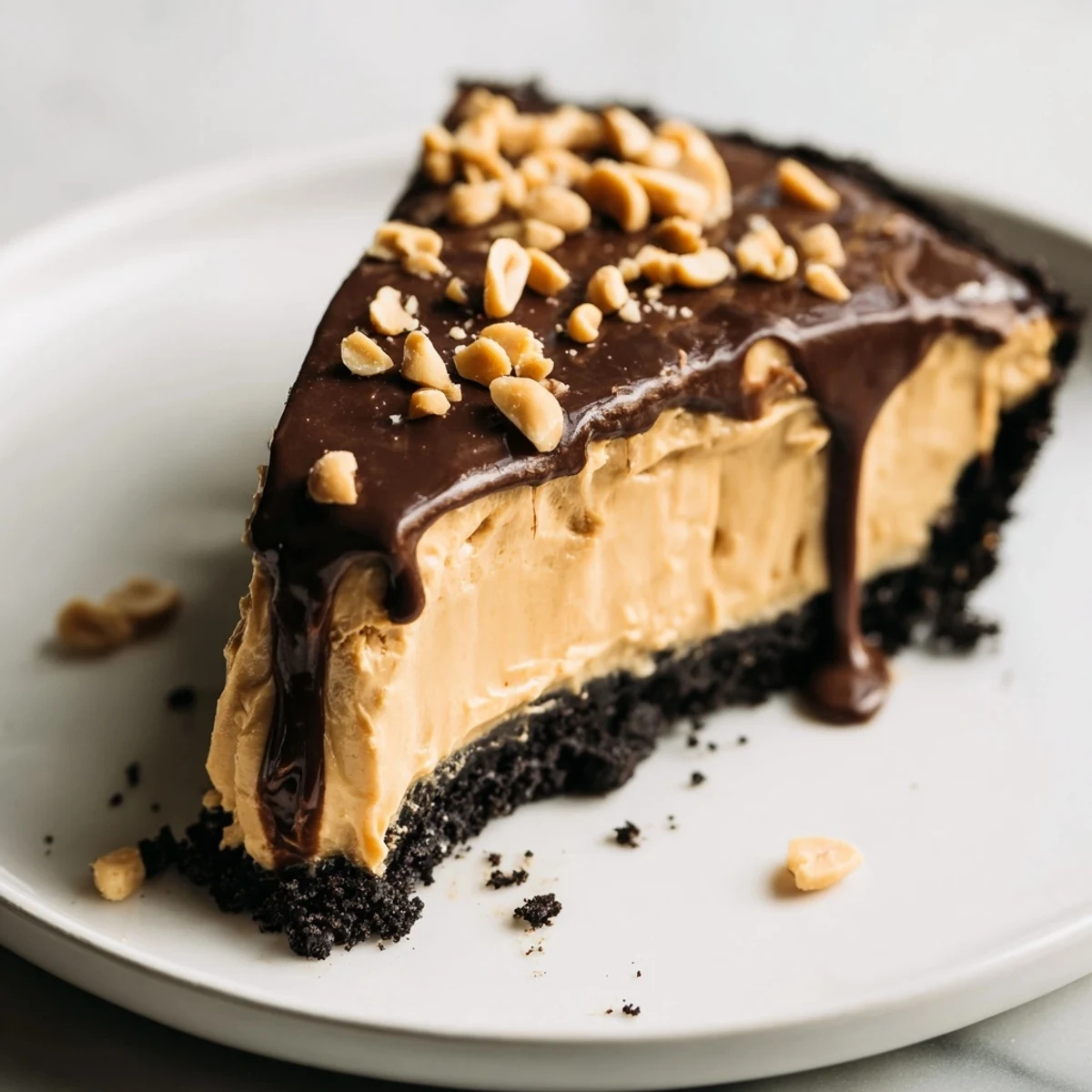 While this pie is perfect on its own, I love serving it with a small drizzle of warm salted caramel and a few extra peanuts scattered on top. The contrast between the cold creamy filling and that warm caramel sauce is absolutely worth the extra five minutes. Sometimes I'll even add a scoop of vanilla ice cream on the side for the full sundae experience.