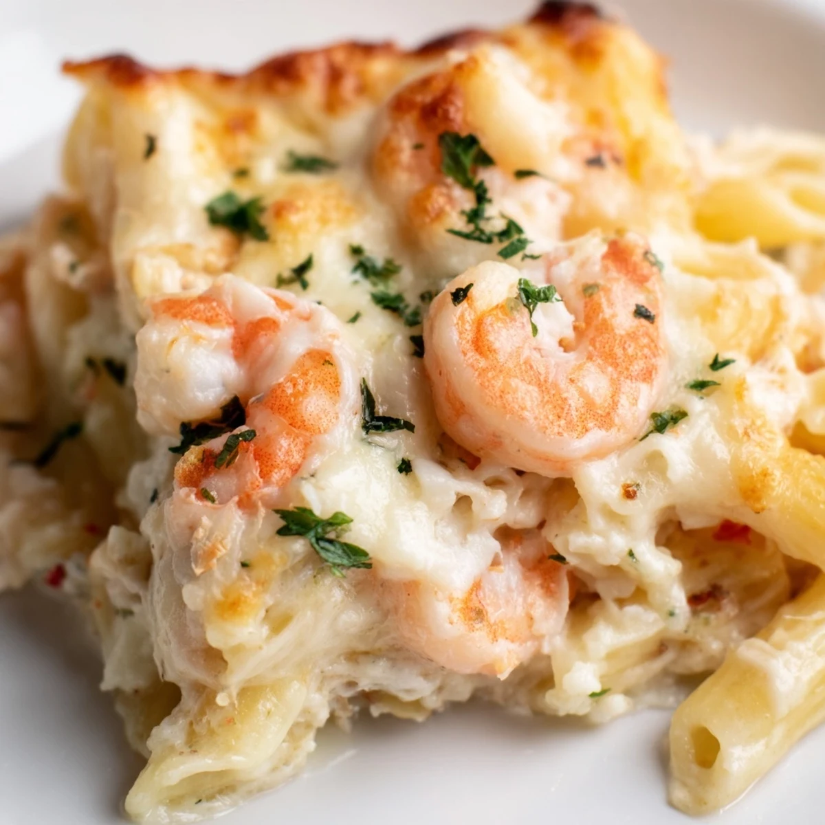 This oven-baked dish combines succulent shrimp with al dente penne in a rich, lemony garlic-butter sauce. The heavy cream creates a velvety texture while white wine adds brightness. After baking, the mozzarella and parmesan topping forms a golden, bubbly crust that adds satisfying crunch. The entire dish comes together in under an hour, making it perfect for weeknight dinners or casual entertaining.