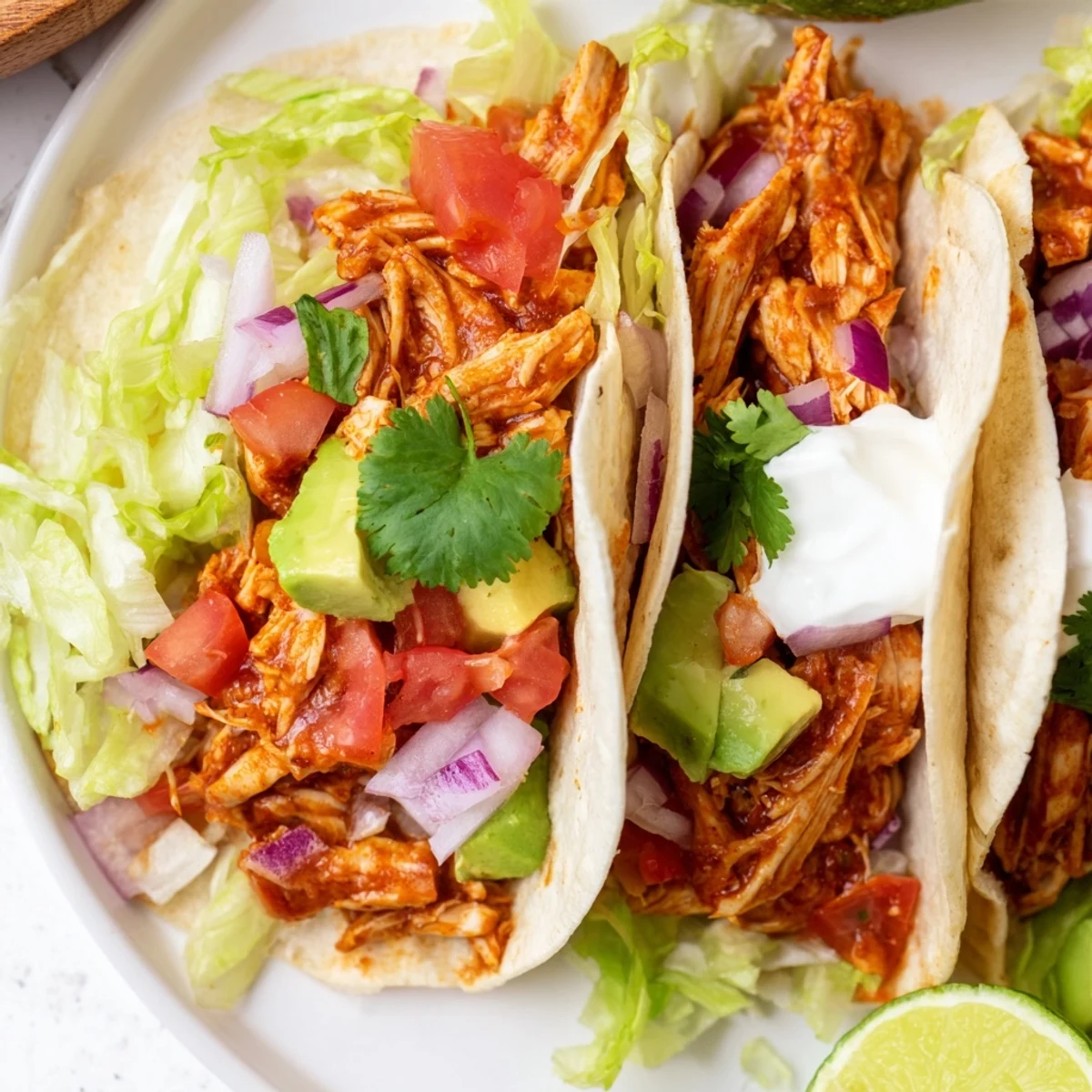 Don't skip the fresh toppings—they're what transform slow-cooked chicken into a proper taco experience. I always set out bowls of shredded lettuce, diced tomatoes, crumbly cheese, and something creamy like avocado or sour cream.
