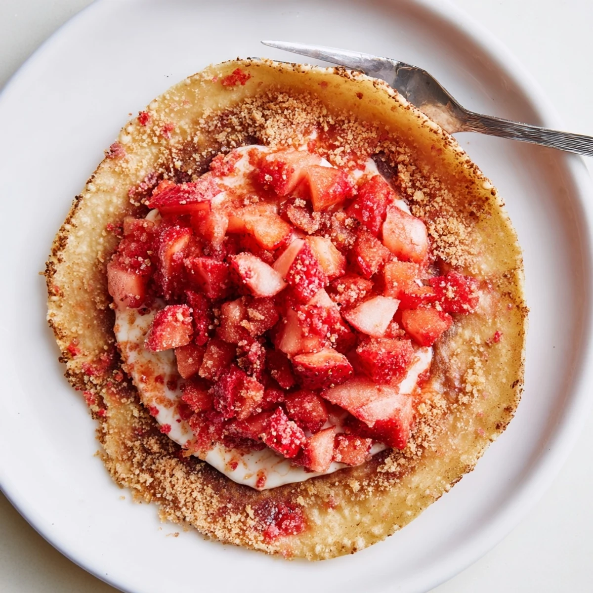 Make crisp cinnamon-sugar taco shells by brushing small flour tortillas with melted butter, sprinkling sugar and cinnamon, then baking until golden. Pulse vanilla sandwich cookies with freeze-dried strawberries and butter for a crunchy rim. Whip softened cream cheese with powdered sugar and fold in stiffly beaten cream for a light cheesecake filling. Pipe into shells, top with diced strawberries, chill briefly for a firmer set, and serve within two hours to preserve crunch.